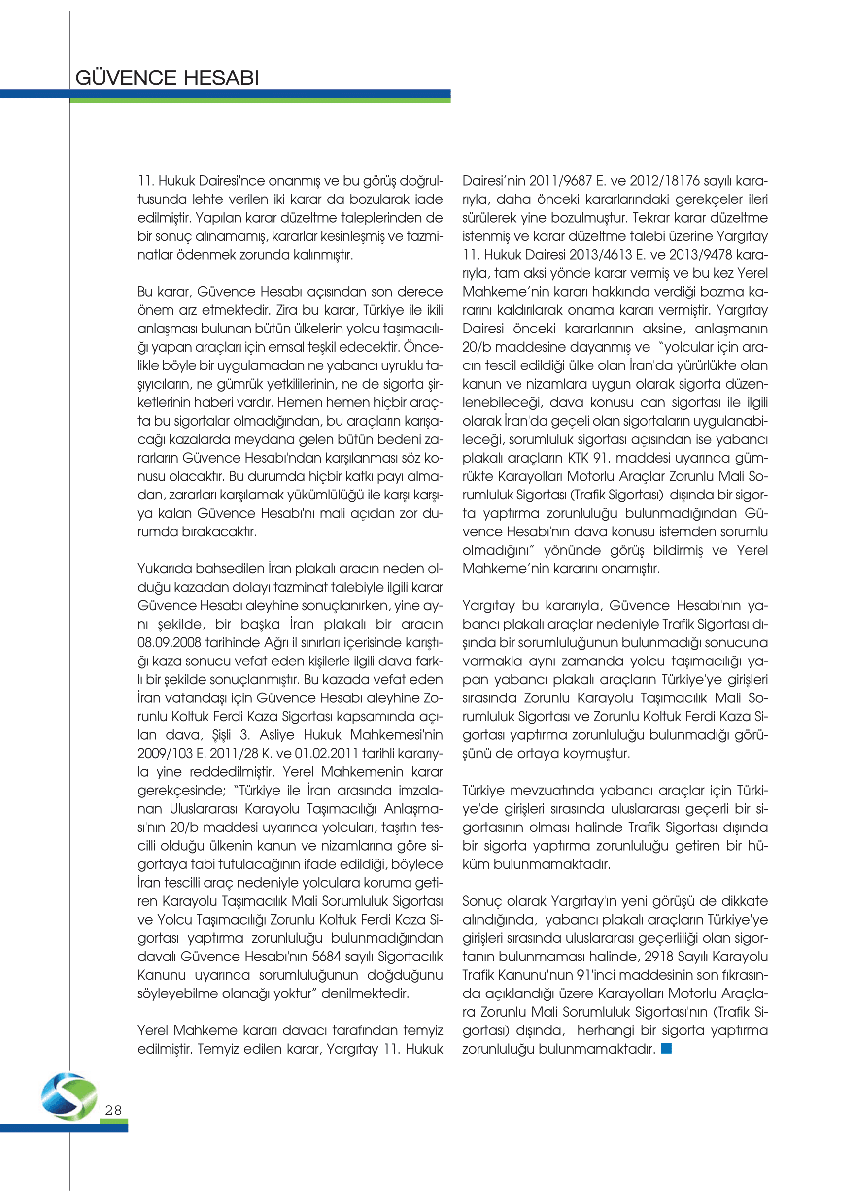 Güvence Hesabı, kapsamında bulunan zorunlu sigortaların sağladığı teminatlara ilişkin bedeni olarak (sakatlık ve ölüm) zarar görenlere kaza sonrasında sakat kalma halinde sakatlık tazminatı, ölüm halinde ise ölenin desteğinden yoksun kalanlara destekten yoksun kalma tazminatı ödemektedir.