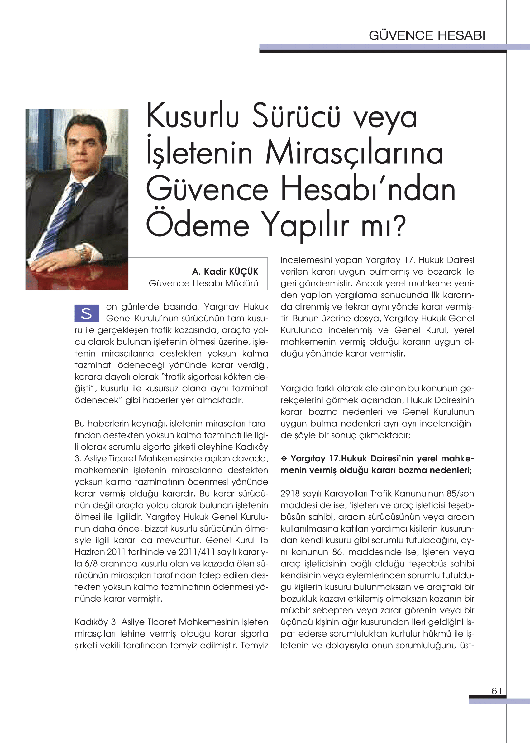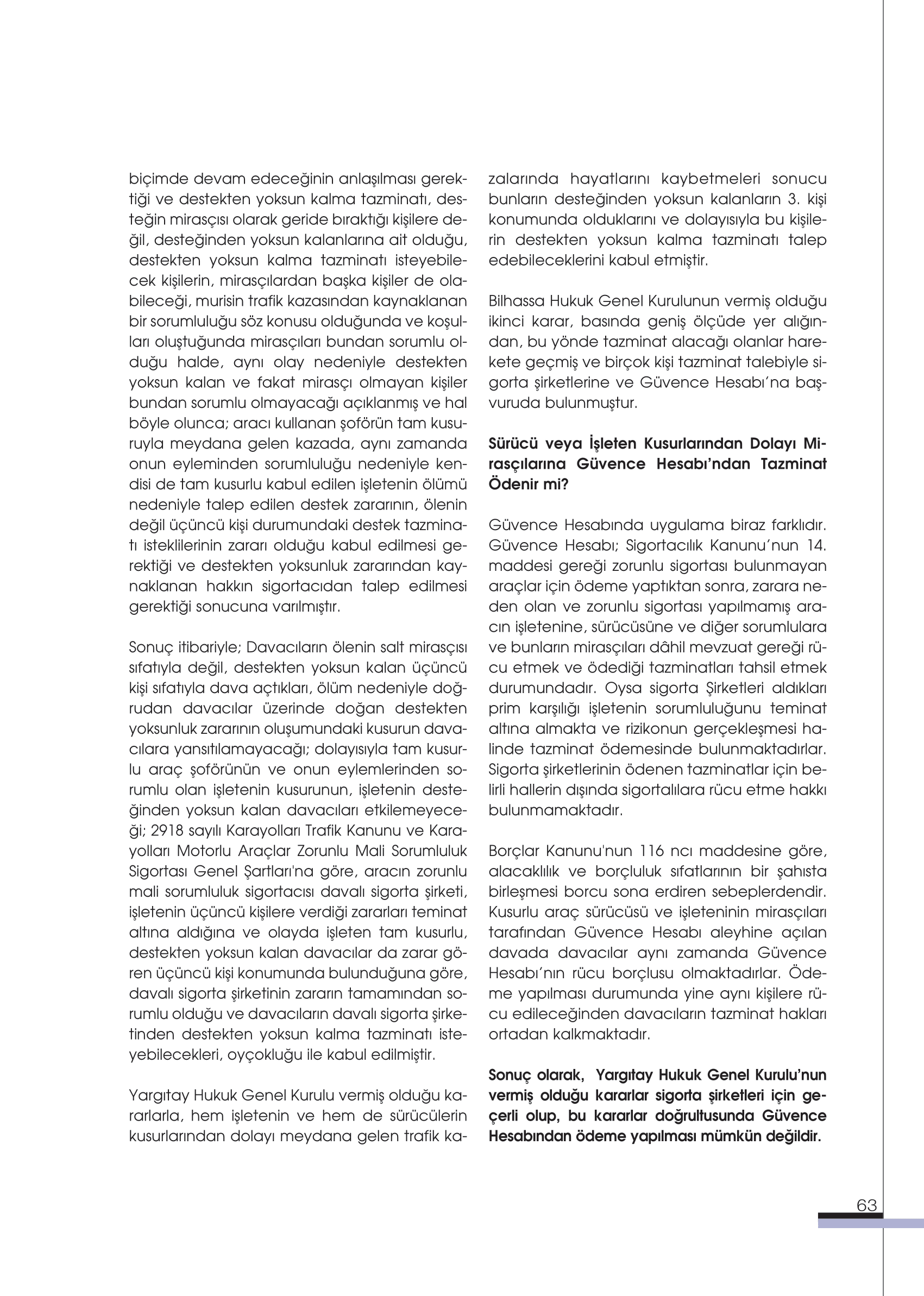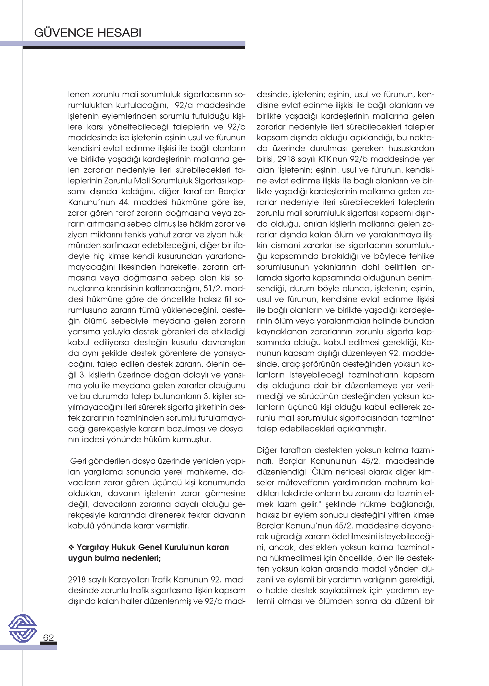 Güvence Hesabı, kapsamında bulunan zorunlu sigortaların sağladığı teminatlara ilişkin bedeni olarak (sakatlık ve ölüm) zarar görenlere kaza sonrasında sakat kalma halinde sakatlık tazminatı, ölüm halinde ise ölenin desteğinden yoksun kalanlara destekten yoksun kalma tazminatı ödemektedir.