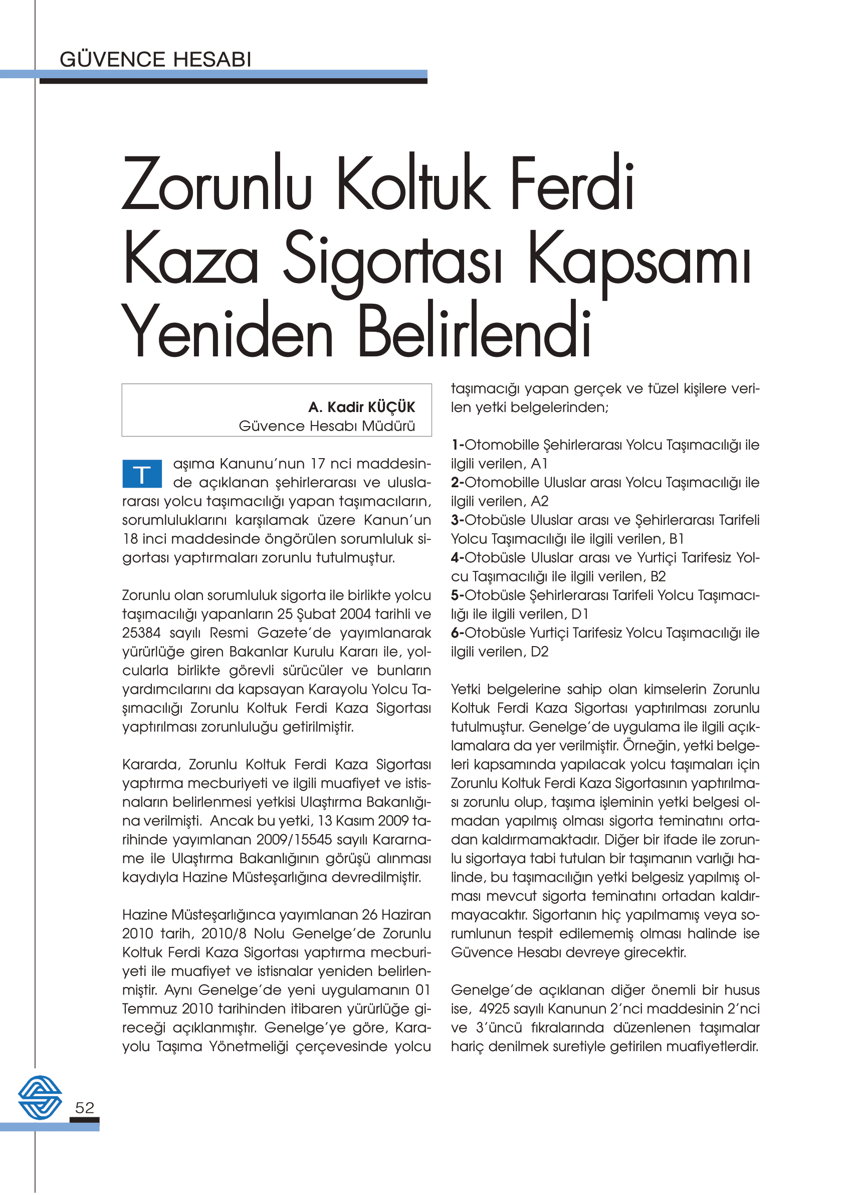 Güvence Hesabı, kapsamında bulunan zorunlu sigortaların sağladığı teminatlara ilişkin bedeni olarak (sakatlık ve ölüm) zarar görenlere kaza sonrasında sakat kalma halinde sakatlık tazminatı, ölüm halinde ise ölenin desteğinden yoksun kalanlara destekten yoksun kalma tazminatı ödemektedir.