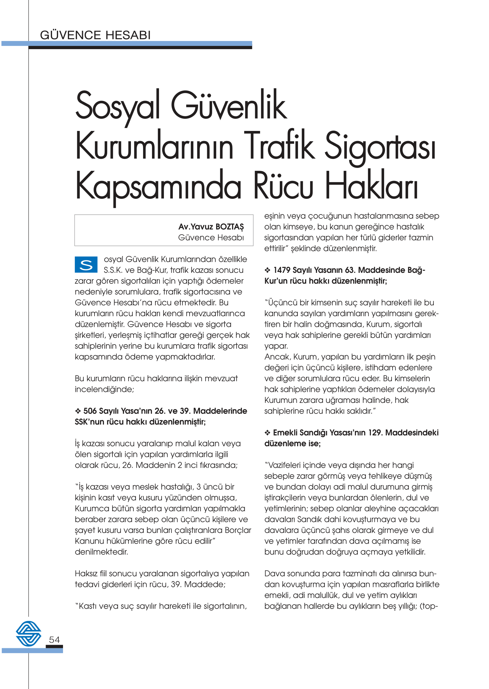 Güvence Hesabı, kapsamında bulunan zorunlu sigortaların sağladığı teminatlara ilişkin bedeni olarak (sakatlık ve ölüm) zarar görenlere kaza sonrasında sakat kalma halinde sakatlık tazminatı, ölüm halinde ise ölenin desteğinden yoksun kalanlara destekten yoksun kalma tazminatı ödemektedir.