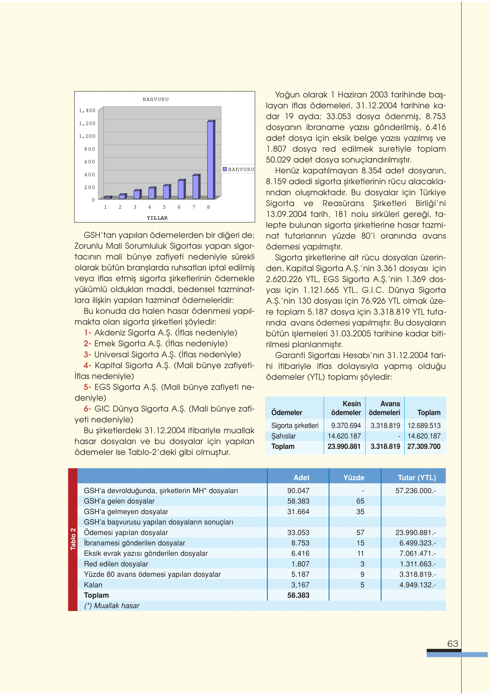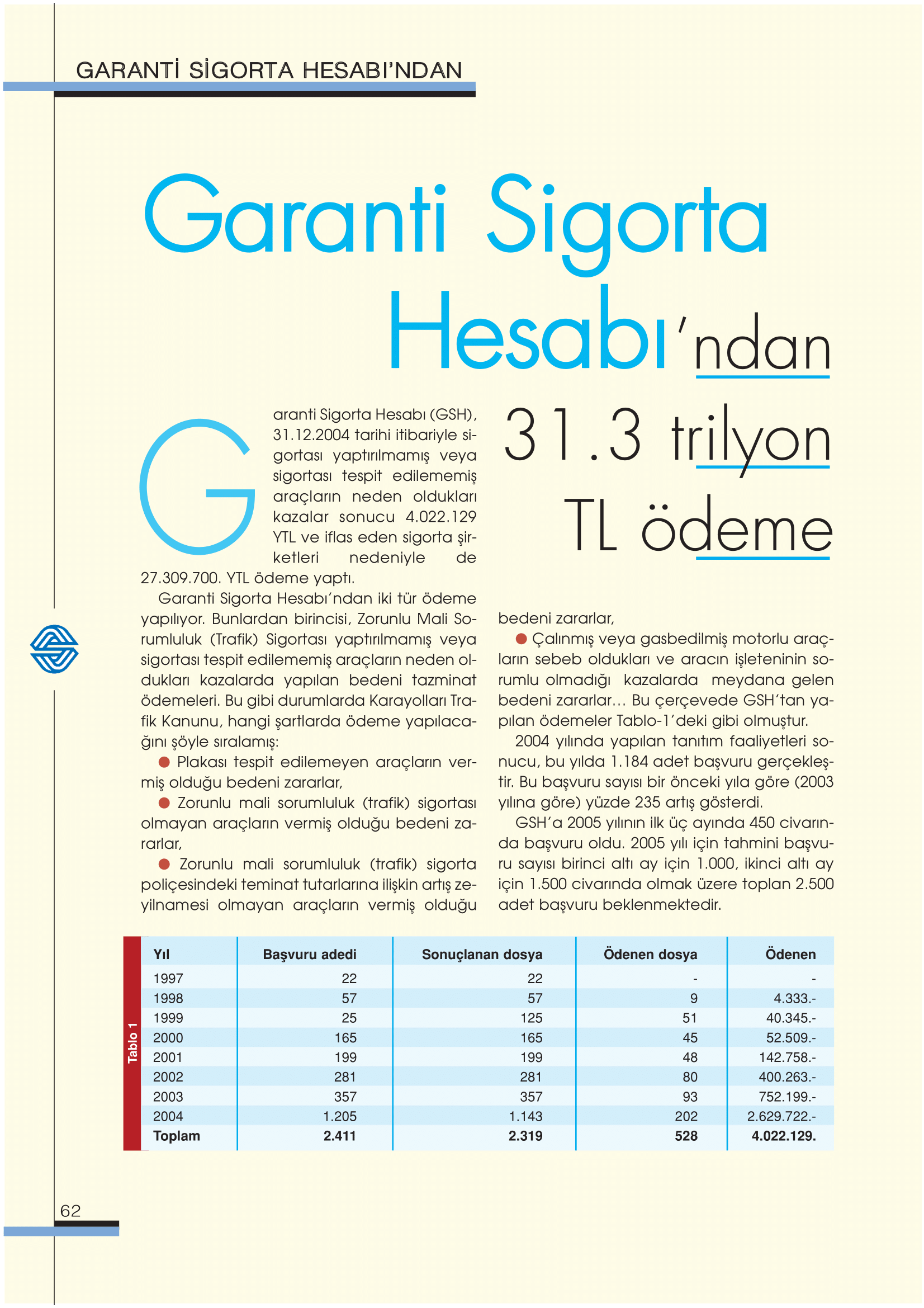 Güvence Hesabı, kapsamında bulunan zorunlu sigortaların sağladığı teminatlara ilişkin bedeni olarak (sakatlık ve ölüm) zarar görenlere kaza sonrasında sakat kalma halinde sakatlık tazminatı, ölüm halinde ise ölenin desteğinden yoksun kalanlara destekten yoksun kalma tazminatı ödemektedir.