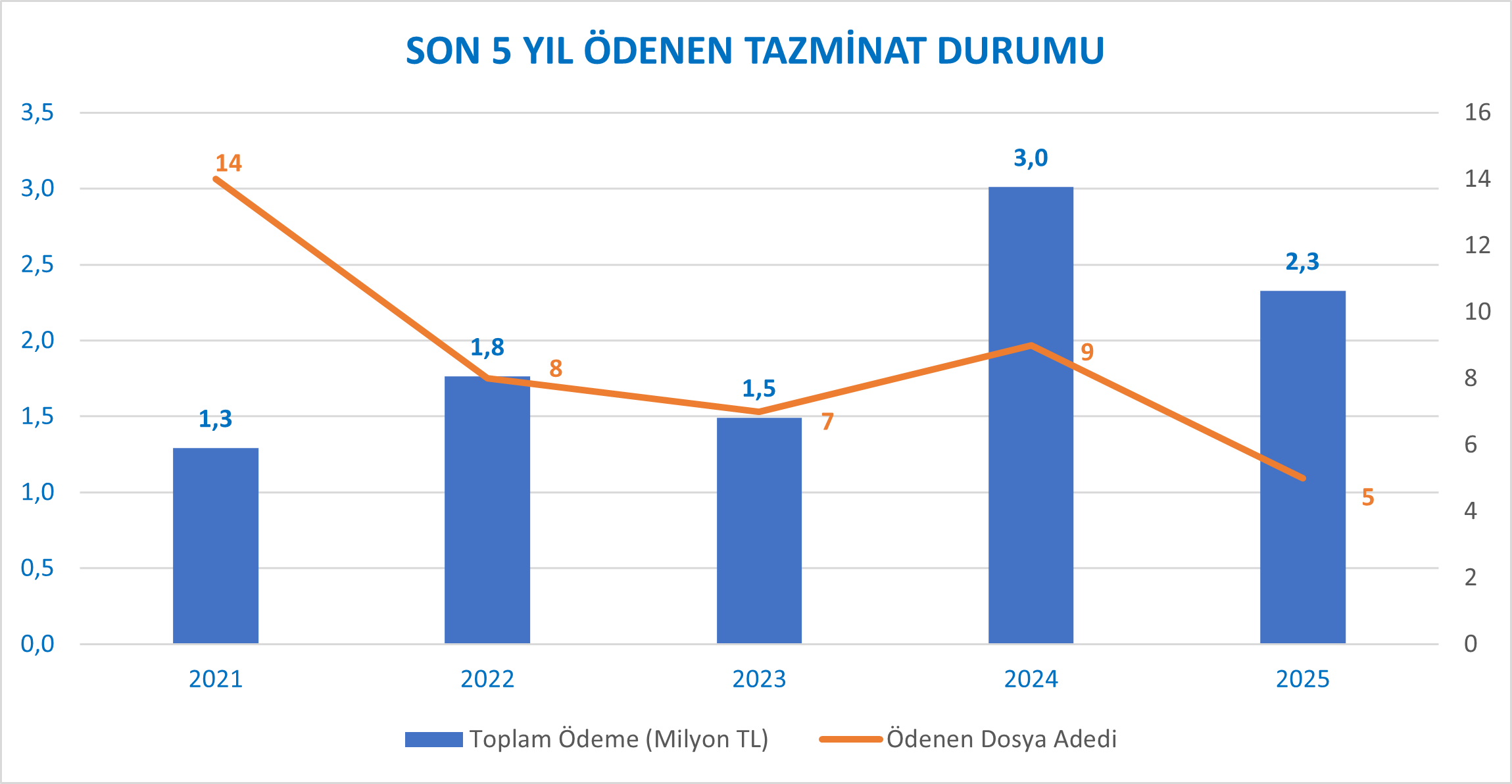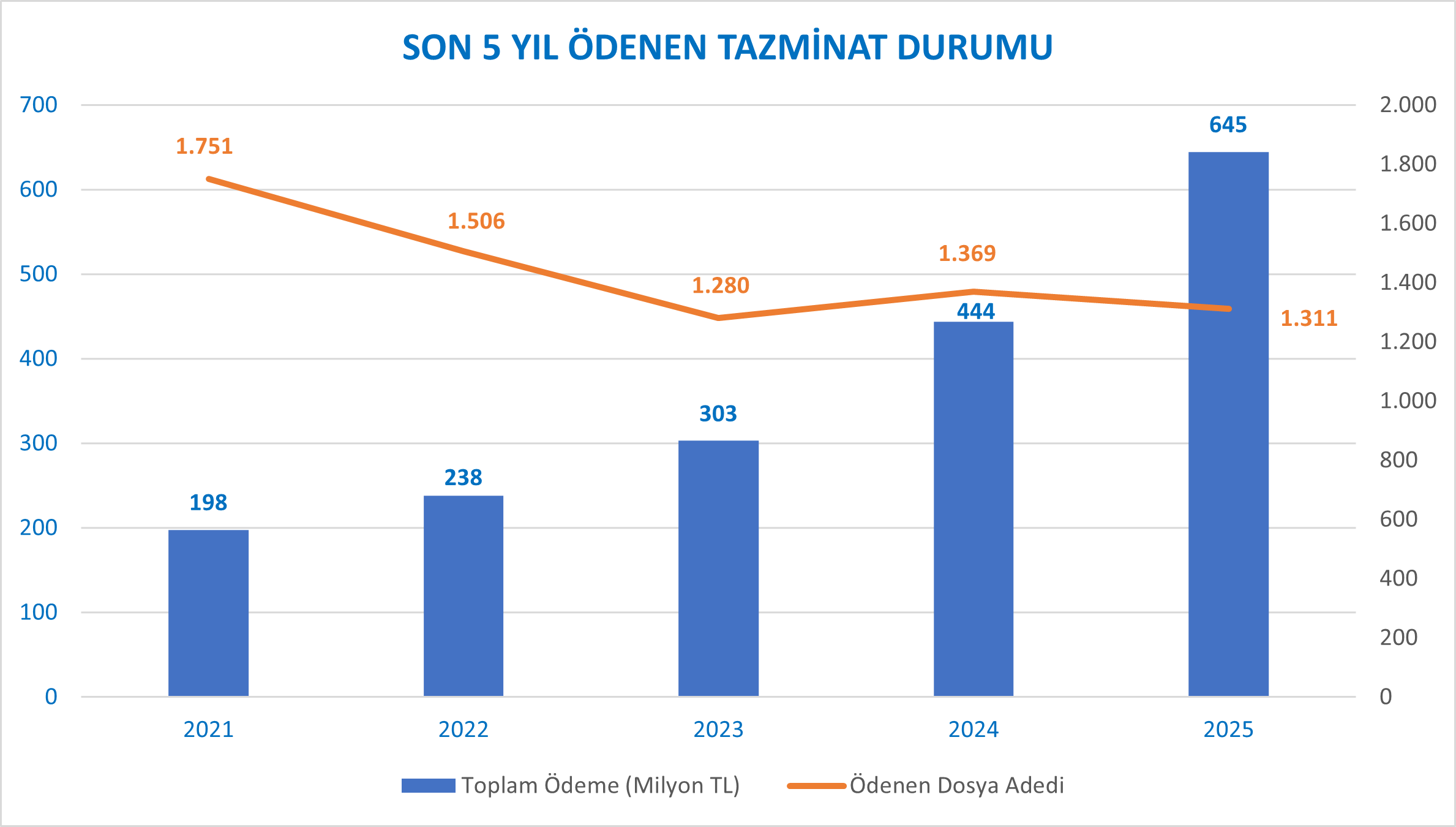 | Yıllar | Ölüm | Maluliyet | Tedavi | Toplam Ödeme (Milyon TL) |