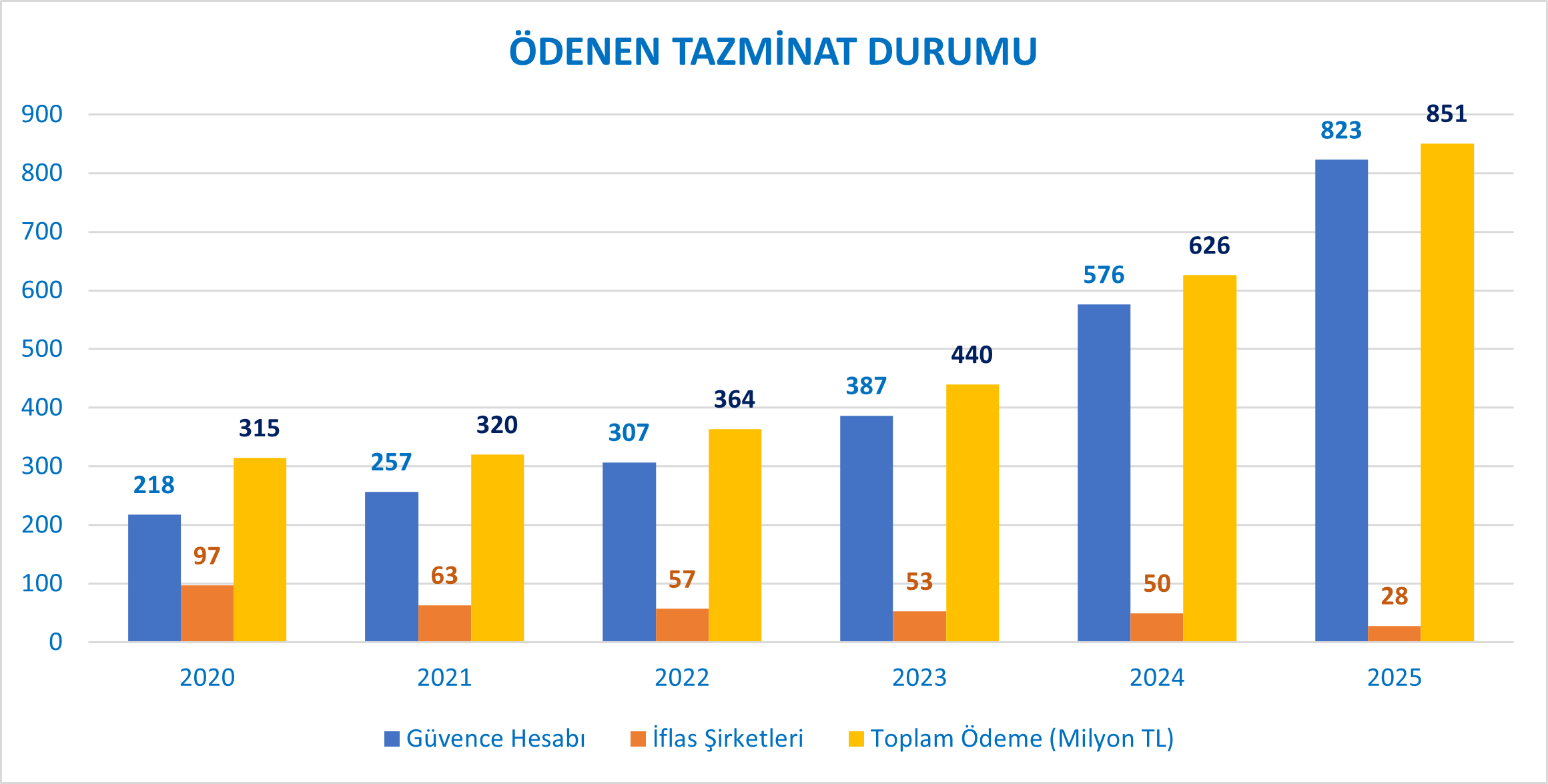 | Yıllar | Güvence Hesabı | İflas Şirketleri | Toplam Ödeme (Milyon TL) |